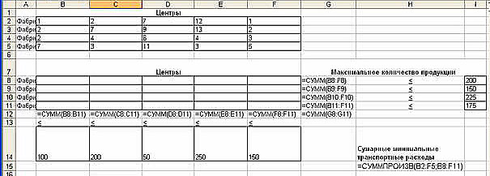 Поскольку данная модель сбалансирована (суммарный объем произведенной продукции равен суммарному объему потребностей в ней), то в этой модели не надо учитывать издержки, связанные как со складированием, так и с недопоставками продукции. В противном случае в модель нужно было бы ввести: