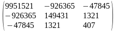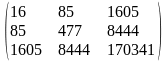 |XTX| = 16 * 477 * 170341 + 85 * 8444 * 1605 + 1605 * 85 * 8444 – 1605 * 477 * 1605 – 85 * 85 * 170341 – 16 * 8444 * 8444 = 3692086