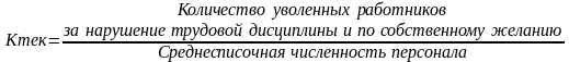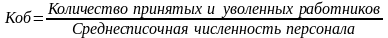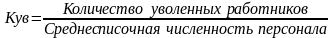 2) коэффициент по увольнению (выбытию) работников (Кув):