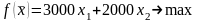 Цена краски Е составляет 3000 (ден. ед.), а цена краски I –2000 (ден. ед.). Необходимо максимизировать целевую функцию: