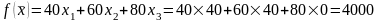 Полученное решение означает, что максимальную выручку от реализации готовой продукции (4000 ед.) предприятие может получить при выпуске 40 единиц изделия 1 вида и 40 единиц изделия 2 вида. При этом ресурс «труд» и «сырье» будут использованы полностью, из 140 единиц оборудования будет использовано только 80 единиц.