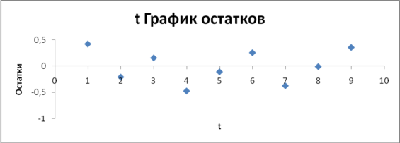 , поэтому гипотеза о равенстве математического ожидания значений остаточного ряда нулю выполняется.