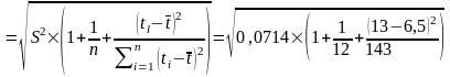 - стандартная ошибка точечного прогноза, которая рассчитывается по формуле: