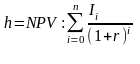 | Чистая приведённая стоимость (NPV) | Рентабельность (h) | Срок окупаемости (T) |