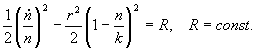 Полученное совпадение показывает, что любое решение логистического уравнения является решением динамического уравнения, выведенного из функционала действия. Однако, не любое решение уравнения является решением логистического уравнения. Для выявления взаимосвязи между данными уравнениями было проведено исследование полученного уравнения эволюции. После некоторых преобразований и интегрирования было получено выражение