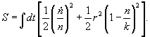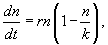 В качестве функционала действия, который приведет к логистическому уравнению роста популяции численности n, было рассмотрено следующее выражение