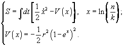 Согласно вариационному принципу, уравнение эволюции x(t) задается требованием экстремальности действия, т.е. dS = 0. После необходимых вычислений было получено динамическое уравнение