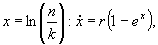 Уравнение эволюции характеризуется константой R: при R > 0 популяция неограниченно растет, при R < 0 популяция достигает максимального значения, а затем уменьшается до 0. Значение R = 0 приводит к логистическому уравнению, тем самым, показывая, что логистический рост – это особый случай равновесия между неограниченным ростом и затуханием.