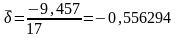 | 9 | 7,3 | 14,6 | 53,29 | 106,58 | 15,35459 | -0,754593 | 0,5694106 | -5,16845 | 0,508824 | 0,258902 | 0,95338 | 14,40121 | 16,30797 | -0,48882 | 0,238942 |
