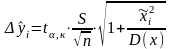 7.2) знайти межі надійних інтервалів індивідуальних прогнозованих значень за формулою