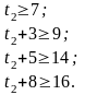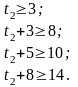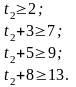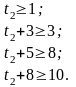 Время t2 начала работ на втором объекте должно удовлетворять следующим неравенствам: