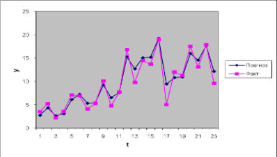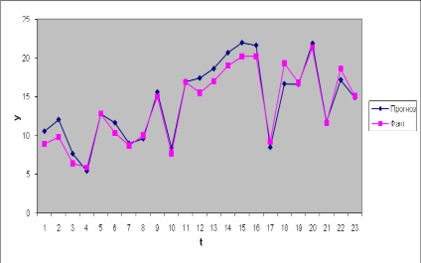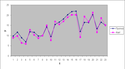 | Значения скользящих средних, полученные по модели | t | Значения у |