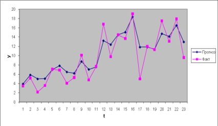 Рассчитаем значения исходного ряда на будущий период, используя формулу: