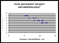 Рисунок 1 – Поле рассеяния «возраст автомобиля-цена»