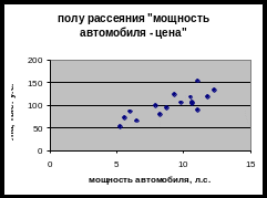 Рисунок 2 – Поле рассеяния «мощность автомобиля-цена»