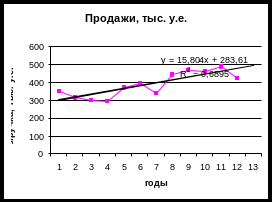 Точечный прогноз среднего значения продаж по линейному тренду находится следующим образом:
