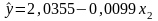 β 0 = 9,0625- 0,0099 * 100.6875= 2.0355