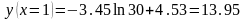 Находим параметры исходной нелинейной модели: а=b1=-3,45; b= b0=4,53.