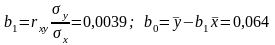 следует, что угловой коэффициент b1 выражается через коэффициент корреляции rxy и среднее квадратичное отклонение фактора и отклика, т.е. знак b1 совпадает со знаком коэффициента корреляции (т.к.