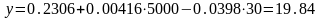 х1=5000, х2=30. Рассчитываем прогнозные значения по модели для всех точек выборки и для точки прогноза: