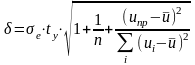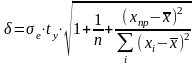 Найдем полуширину доверительного интервала в каждой точке выборки xпр: