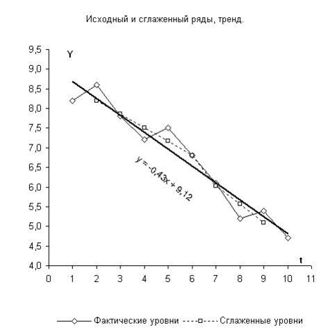 Из таблицы 1 видно, что ряд Y(t) имеет тенденцию к снижению.