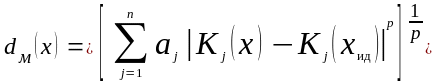 На основе выявленных данных подсчитаем значение меры расстояния для каждого варианта решения, используя функцию Минковского: