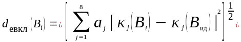 dевкл (В3) = [0,293 |0,143 - 0,714|2 + 0,251 |0,258 - 0,637|2 +