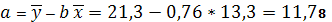 Уравнение линейной регрессии имеет вид: у=11,78+0,76х