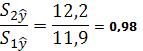 , т. к. Fнабл=0,98, Fкр(α,к1,к2)= Fкр(0,05,5,5) =5,05 (из таблицы критерия Фишера), Fнабл