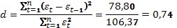 Независимость остатков проверяется с помощью критерия Дарбина – Уотсона по формуле