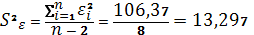 2. Вычисленные остатки и остаточная сумма квадратов представлены в таблице 1. Дисперсию остатков