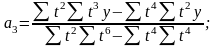 2. Для вычисления параметров функции y=a0+a1t+a2t2+a3t3 :