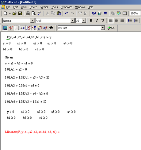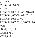 Для решения задачи необходимо также выделить столбец (в данном примере - столбец D), в который будут введены формулы для расчета значений левой части ограничений. Формула вводится также и в ячейку, в которой будет рассчитаны затраты на себестоимость предприятия (ячейка D7). Нужно обратить внимание на то, что в формулах используются не числа или символьные обозначения, а координаты ячеек таблицы, в которых хранятся эти числа и переменные.