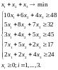 Обозначим за x1 количество заготовок, разрезаемых по способу 1, за x2 - количество заготовок, разрезаемых по способу 2 и т.д.Используя модель линейного программирования с минимизацией расхода материала, получим: