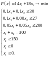 Пусть x1 - объем производства ржаной муки, x2 - объем производства пшеничной муки. Тогда задача может быть описана в виде следующей модели линейного программирования: