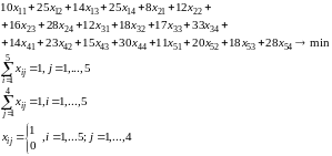 Фирма получила заказ на срочный перевод четырех книг с итальянского языка. Фирма может располагать услугами 5 переводчиков, способных выполнить работу такого уровня. Время в днях, за которое каждый переводчик справится с работой, приведено в таблице: