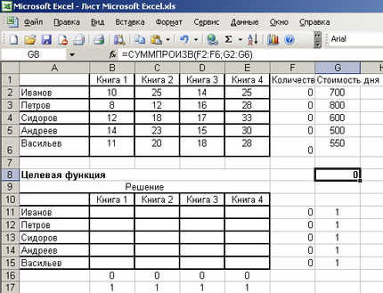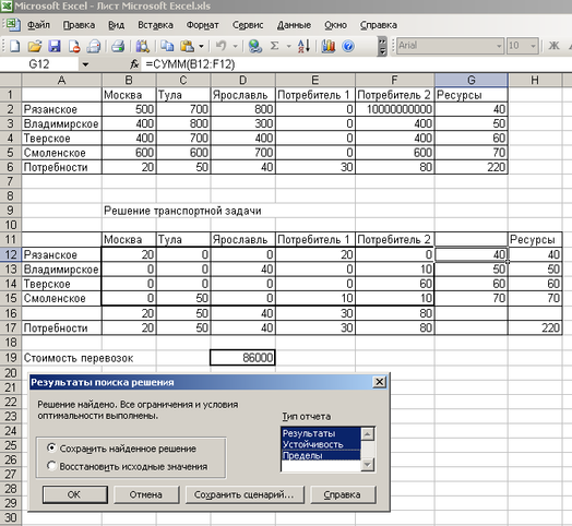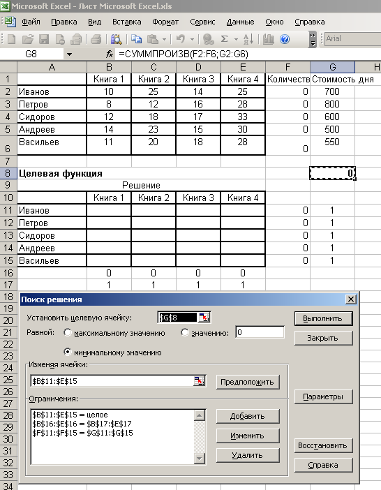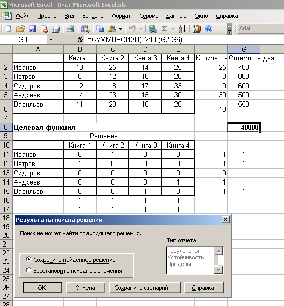 При необходимости, присвоив переменным полученные значения, можно рассчитать и значение целевой функции.