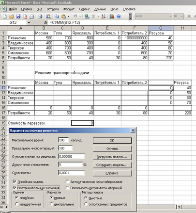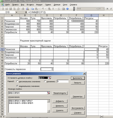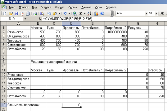 После нахождения оптимального плана объемы перевозок в Москву необходимо прибавить к объемам перевозок Потребителя 2