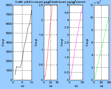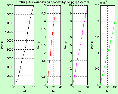 title('Grafiki pribili kompanii za sootvetstvyuwi period vremeni');