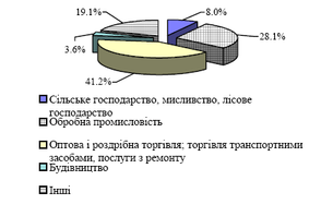 Рис. 3.7 . Структура вимог банків за кредитами, наданими суб'єктам господарювання, на 01.11.2004 року (за видами економічної діяльності) [59, c.35]