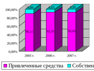 Собственные средства банка является стабильным источником, обеспечивающим платежеспособность Банка «Первомайский» (ЗАО), обеспечивающим покрытие кредитных рисков. Роль и величина собственного капитала коммерческих банков имеют особенную специфику, отличающуюся от предприятий и организаций, занимающихся другими видами деятельности тем, что за счет собственного капитала банки покрывают менее 10% общей потребности в средствах. Приведенные данные таблицы 2 и рисунок 4 показывают, что в общей сумме ресурсов коммерческого банка на долю собственных средств в 2005 г. приходилось 9,89%, в 2006 г. - 6,65%, а в 2007 г. - 6,95% . Общая сумма источников собственных средств в 2006 г. увеличилась на 8,83% по сравнению с 2005 г., а в 2007 г. ее рост составил 150,13%.