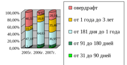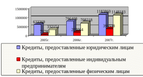 На рисунке 7 отражены данные о кредитах, выданных юридическим лицам Банком «Первомайский» в 2005-2007 г.г., в зависимости от сроков предоставления. эти данные.