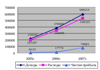 Общая сумма доходов в 2005 г. составила 216165 тыс.руб., в 2006 г. - 378000 тыс.руб., при этом ее рост составил 174,87%. В 2007 г. доходы банка увеличились на 211253 тыс.руб., что составляет 55,89%.