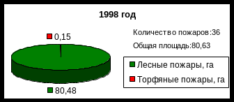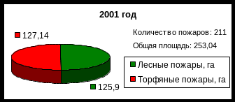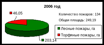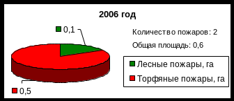 Рис. 2.6 - Соотношение площадей (в гектарах) лесных и торфяных пожаров