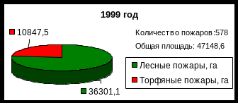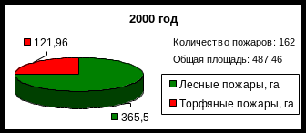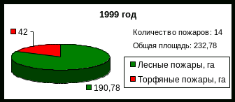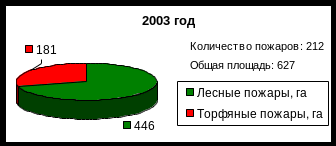 Рис. 2.7 - Соотношение площадей (в гектарах) лесных и торфяных пожаров