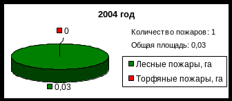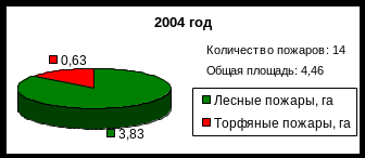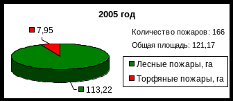 Рис. 2.5 - Соотношение площадей (в гектарах) лесных и торфяных пожаров