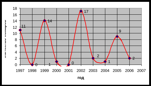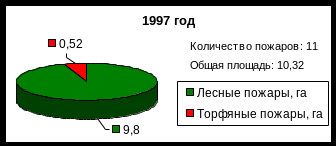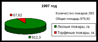 В Вологодской области в период с 1997 по 2006 год наиболее пожароопасными годами являются: 1997, с 1999 по 2003, 2005 и 2006 гг.