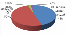 Следующий вопрос «Какие вещи взять в эвакуацию?» обсуждался на уроке ОБЖ. Диаграмма 5 показывает ответы опрошенных, практически все упомянули документы и теплые вещи (зимой) [рис.5].