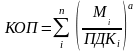 Категория опасности предприятия (КОП) рассчитывается в зависимости от массы и видового состава выбрасываемых в атмосферу загрязняющих веществ в соответствии с рекомендациями по формуле: